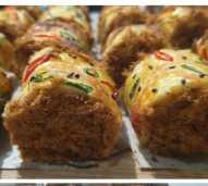 Roti lembut dibalut dengan krim dan gurihnya abon